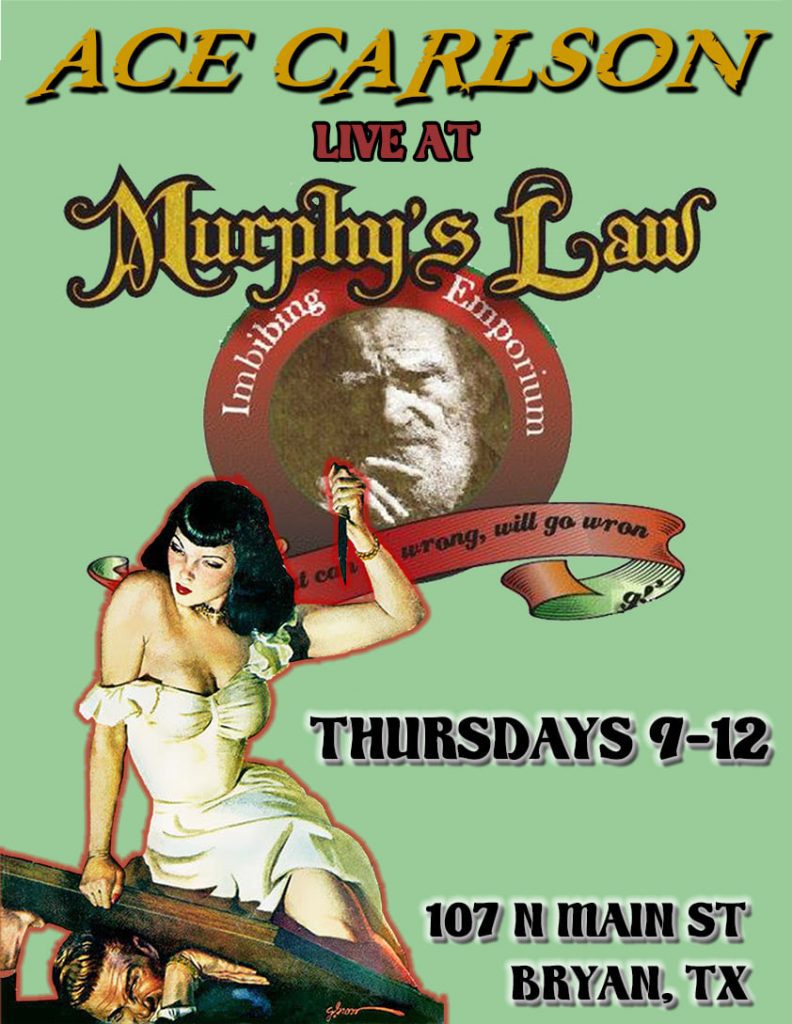 Ace Carlson at Murphy’s Law ACE CARLSON is stopping by MURPHY’S LAW every Thursday to serenade us with blues and rock while creepy old horror movies play in the background –