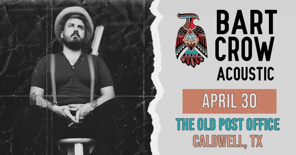 Bart Crow heads to Caldwell, TX on April 30 to play The Old Post Office!