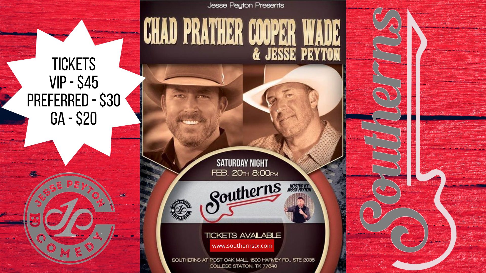20feb8:00 pmChad Prather, Cooper Wade & Jesse Peyton at Southerns