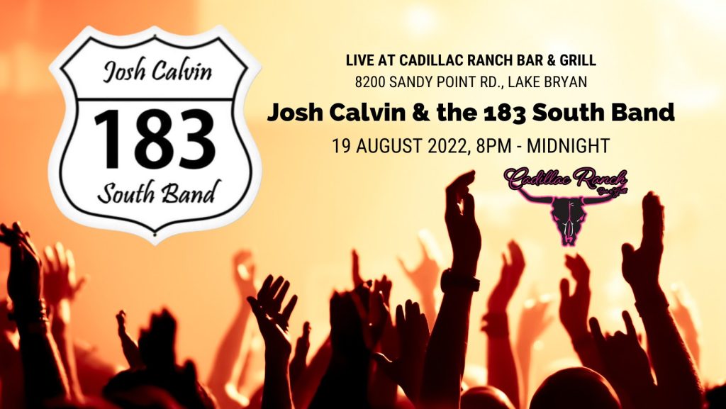 19aug8:00 pmJosh Calvin & the 183 S. Band LIVE @ Cadillac Ranch Bar & Grillat Lake Bryan
