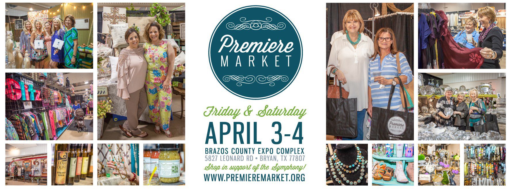 Premiere Market 2020 Get all your spring and summer shopping done in one place! Just in time for Graduations, Easter, Mother’s Day gifts, and summer weddings, the Brazos Valley Symphony Orchestra