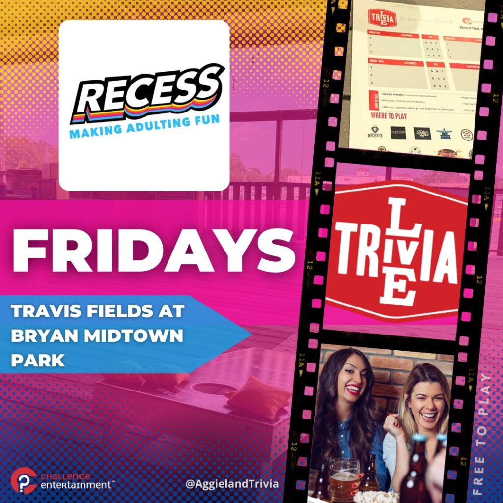Join us for #LiveTrivia at Travis Fields at Bryan Midtown Park and Recess Like An Adult!