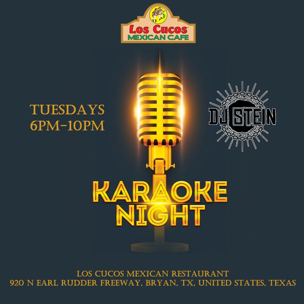 Tuesday Night Karaoke at Los Cucos in Bryan, TX Come out to Los Cucos every Tuesday night; sing, dine, laugh,